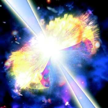 When a massive star (perhaps 10-40 times the Sun’s mass) explodes, it is called a supernova. If the star is very massive, more than 40 times that of Sun, and spins rapidly, it may form a hypernova, a kind of super-supernova. Theoretical arguments show that the energy released in a hypernova could power the longer duration gamma-ray bursts, which often show afterglows in X-ray, visible, infrared, and radio light. Fermi will determine if they commonly create high-energy gamma rays.