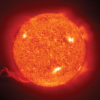 Our own modest star is capable of extraordinary outbursts. The writhing interior of the Sun generates twisted, complex magnetic field lines. When these break and reconnect, they can generate vast amounts of energy, equal to a million megatons of TNT. Energetic subatomic particles are created in such events, which decay to form gamma rays. Fermi will be sensitive to this emission, and may help untangle the mystery in our own backyard.